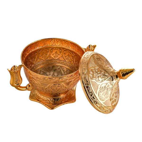 | Al Hoora 19x13x10cm Gold Cooper Candy Bowl W/Cover , Knob , Base & 2 Special Handle |