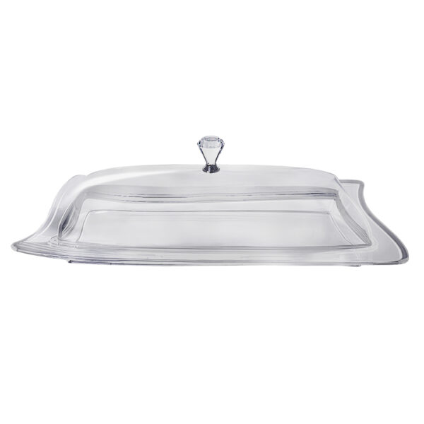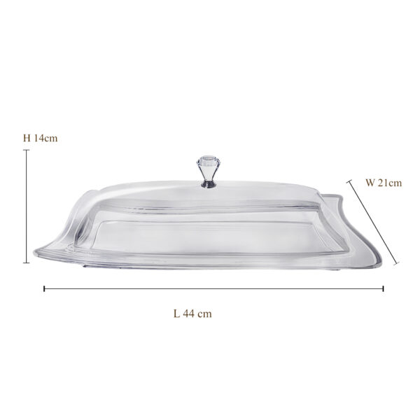Al Hoora 44*21*H14cm Rectangular Acrylic Serving Clear Dish W/ Clear Cover,Use For Cake, Sweets,Dessert,Candy,Sandwich , Beautiful Diamond Shape Knob And Box