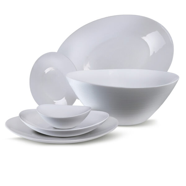 Set Of 26 Pcs Bormioli Rocco Dinnerware Set Serving for 6, 31.5x26cm Oval Steak Plate , 25x24cm Oval Big Bowl, 6Pcs 27x24cm Oval Dinner Plates, 6Pcs 22x19cm Oval Fruit Plates, 6Pcs23x20cm Oval Soup Plate, 6Pcs 15x14cm Oval Small Bowl , With Color Box AED 199.00