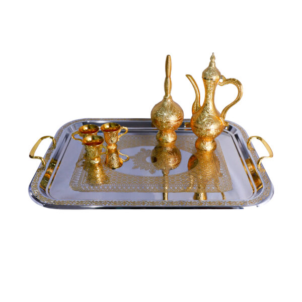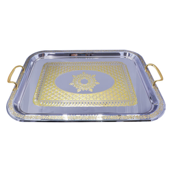 AlHoora, 55X41 cm Rectangular Serving Tray Silver & Gold Turkish Design with box