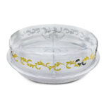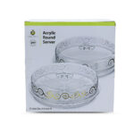 Be the first to review “Al Hoora 32*32*H9cm Round Acrylic Serving Clear Dish Divider W/ Gold Border Pattern & Clear Cover,Use For Sweets,Dessert,Candy,Nuts,Dry Fruits , Beautiful Shape Knob And Box” Cancel reply