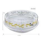 Al Hoora 32*32*H9cm Round Acrylic Serving Clear Dish Divider W/ Gold Border Pattern & Clear Cover,Use For Sweets,Dessert,Candy,Nuts,Dry Fruits , Beautiful Shape Knob And Box