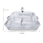 Al Hoora 34*34*H21cm Square Acrylic Serving Clear Dish Divider W/ Clear Cover,Use For Sweets,Dessert,Candy,Nuts,Dry Fruits , Beautiful Shape Knob And Box