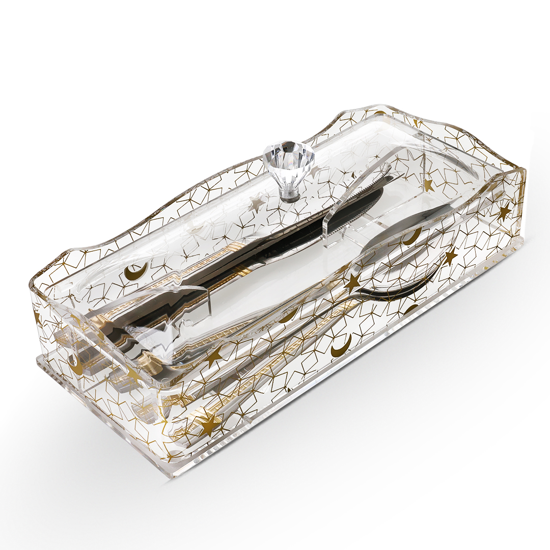 AlHoora 26x11x6cm Cutlery Box With Gold Decal Design On The Body , Wave Edge On Top Border , Cover & Gift Box