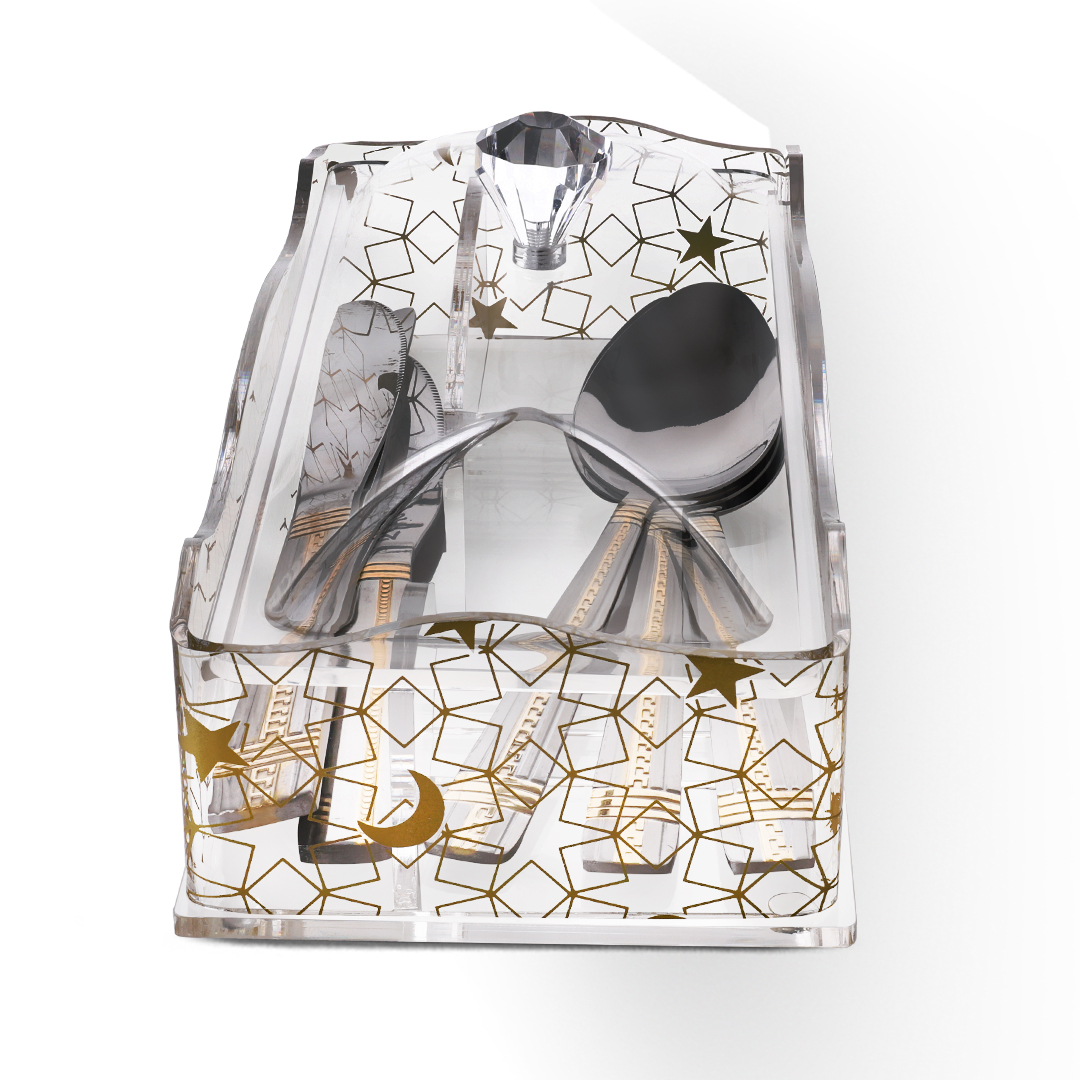 | AlHoora 26x11x6cm Cutlery Box With Gold Decal Design On The Body , Wave Edge On Top Border , Cover & Gift Box |