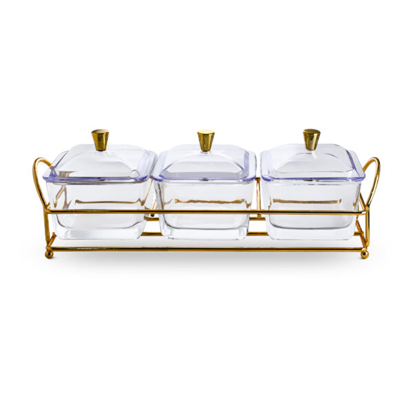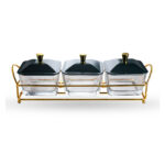 | AlHoora 31x9x8cm Three Pieces Glass Of Multi Purpose Serving Dish In Green Plastic Cover With Gold Metal Frame |