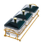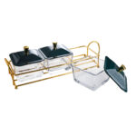 Be the first to review “AlHoora 31x9x8cm Three Pieces Glass Of Multi Purpose Serving Dish In Green Plastic Cover With Gold Metal Frame” Cancel reply