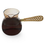 | AlHoora 400Ml Heat Resistant Brown Borosilicate Glass Coffee Warmer With Metal Handle |