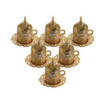 AlHoora, Set of 6 Gold Turkish Moroccan Arabic Decorative , With 6pcs Cup Set,With Box