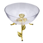 Al Hoora 24*24*H24Cm Round Glass Serving Bowl W/ Beautiful Gold Leaves & Rose Stand Spot,Use For Dessert,Candy,Nuts, Salad, Snacks, With Box