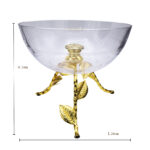 | Al Hoora 24*24*H24Cm Round Glass Serving Bowl W/ Beautiful Gold Leaves & Rose Stand Spot,Use For Dessert,Candy,Nuts, Salad, Snacks, With Box |