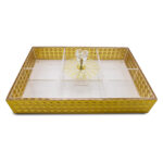 Be the first to review “Al Hoora 30.5*20.5*H10Cm Rect. Acrylic Gold Serving Tray,Cake Dish,Dessert Tray,Candy Dish W/ Geometric Pattern , 6 Divider , Clear Cover , Rose Flower Knob And Color Box” Cancel reply
