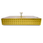 Al Hoora 34*34*H21cm Square Acrylic Serving Clear Dish Divider W/ Gold Border & Clear Cover,Use For Sweets,Dessert,Candy,Nuts,Dry Fruits , Beautiful Shape Knob And Box