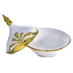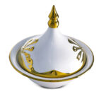 Be the first to review “Al Hoora 12.5*12.5*H13Cm 3 Round White Ceramic Serving Bowl Stand W/ Beautiful Gold Pattern ,Use For Sweets,Candy,Nuts, W/ White Cover W/ Beautiful Pattern Gold Knob” Cancel reply